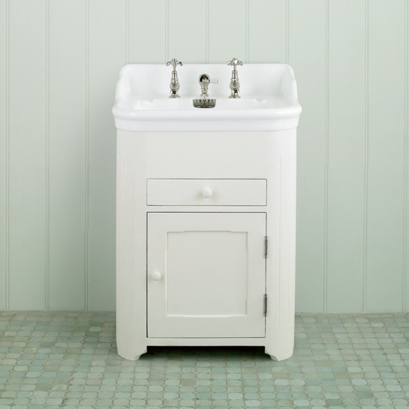 Original restored basin mounted on bespoke wooden cabinet, primed or painted in any colour.