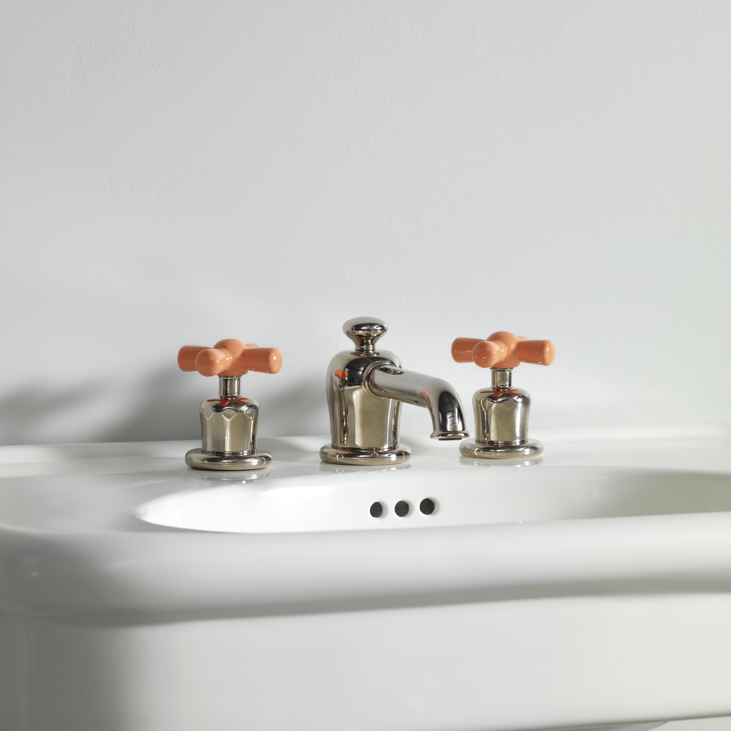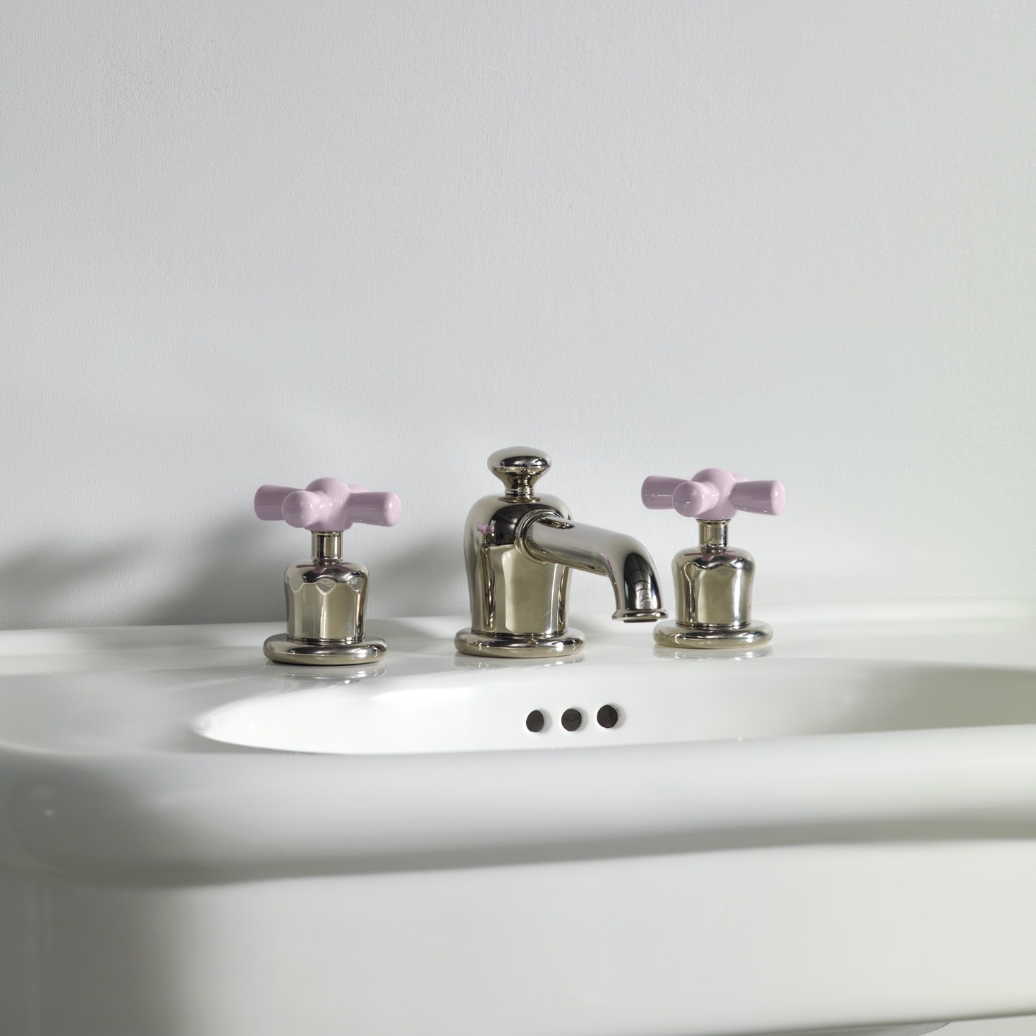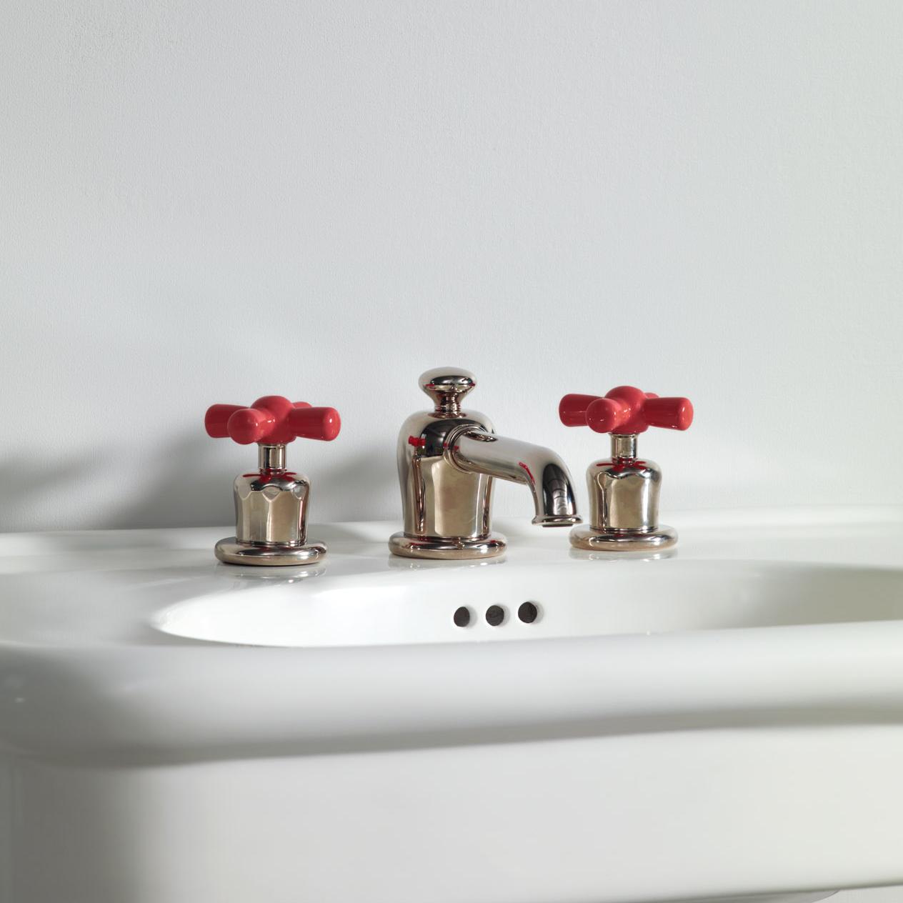 Rockwell deck mounted 3 hole basin mixer tap with integrated pop up waste mechanism and all metal crossheads. Also available with coloured crossheads - Matt black/Graphite, Gloss black/Ink, Grey/Seattle, White/Snowdrop, Blue/Powder, Green/Willow, Lilac/Bonbon, Pale pink/Conch, Red/Lipstick, Orange/Squash or Yellow/Sherbet.