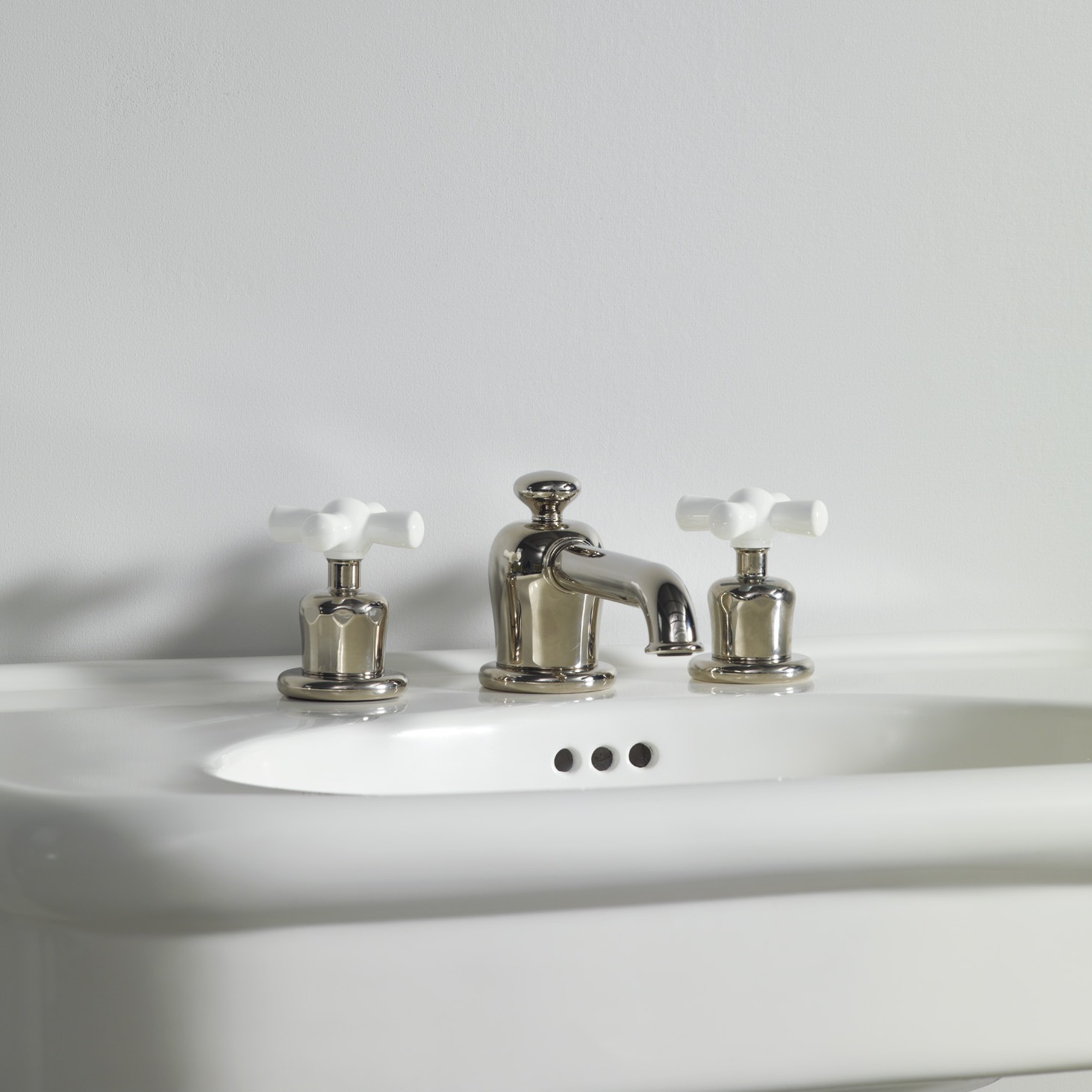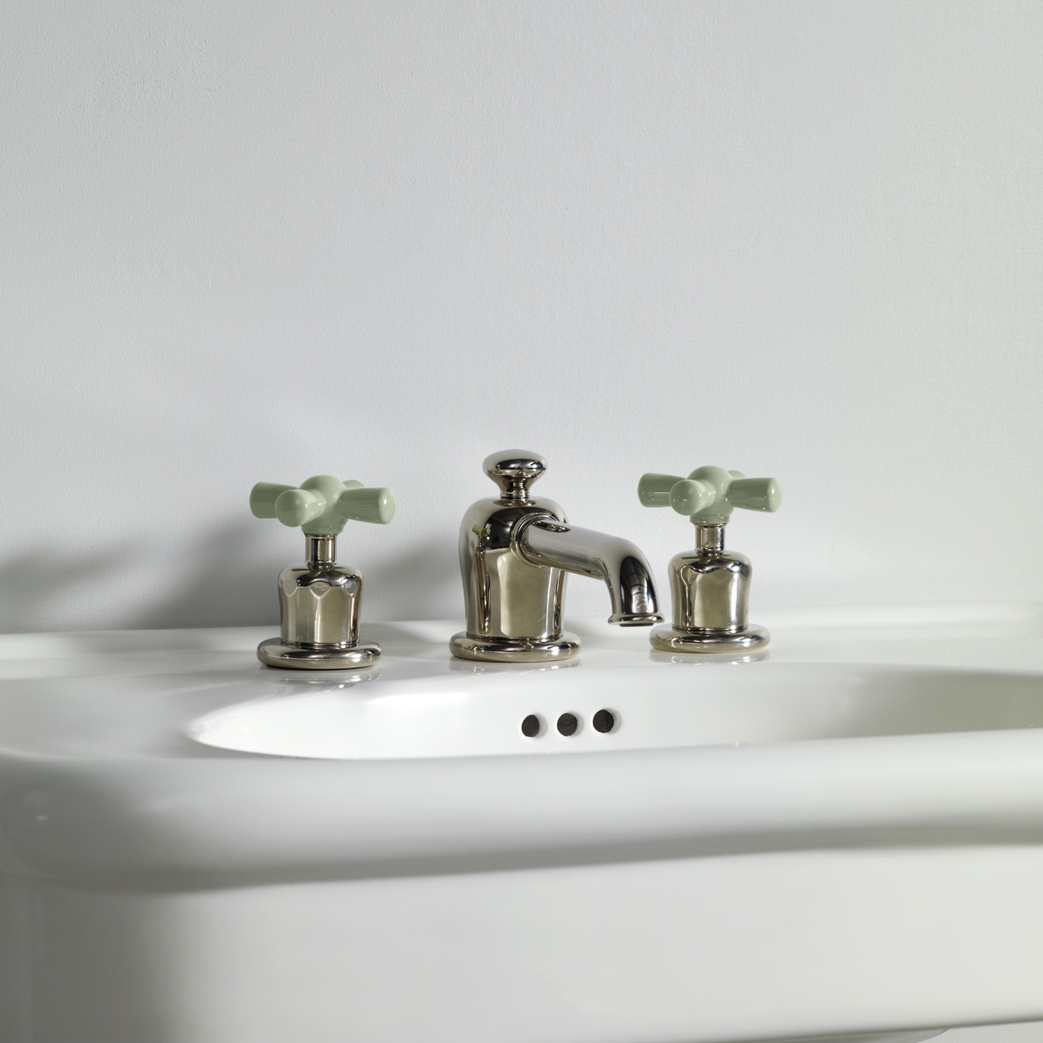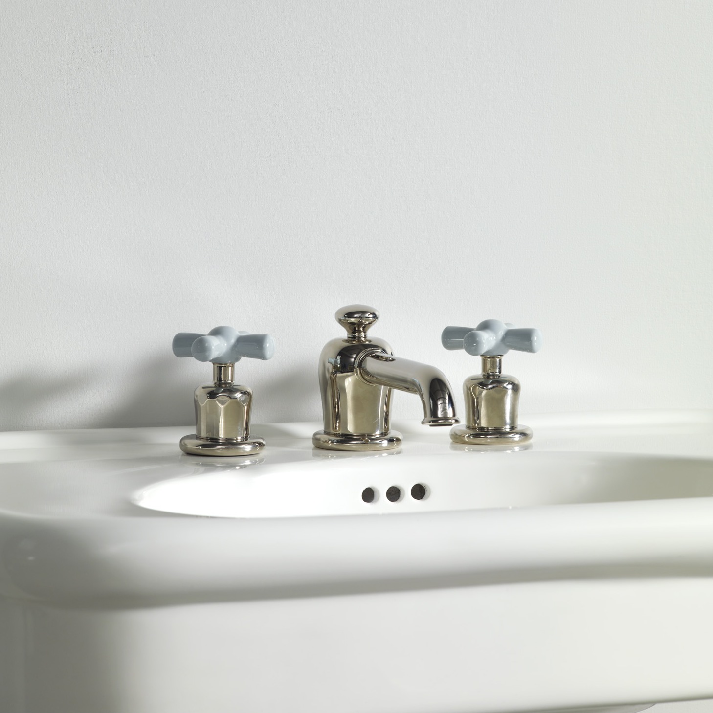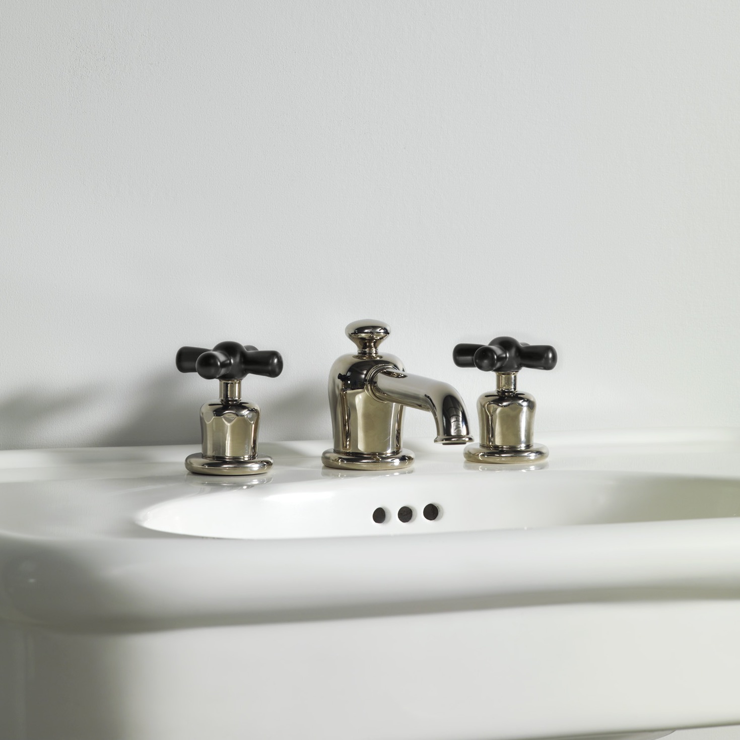 Rockwell deck mounted 3 hole basin mixer tap with integrated pop up waste mechanism and all metal crossheads. Also available with coloured crossheads - Matt black/Graphite, Gloss black/Ink, Grey/Seattle, White/Snowdrop, Blue/Powder, Green/Willow, Lilac/Bonbon, Pale pink/Conch, Red/Lipstick, Orange/Squash or Yellow/Sherbet.