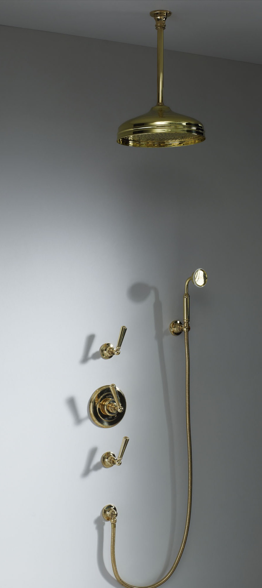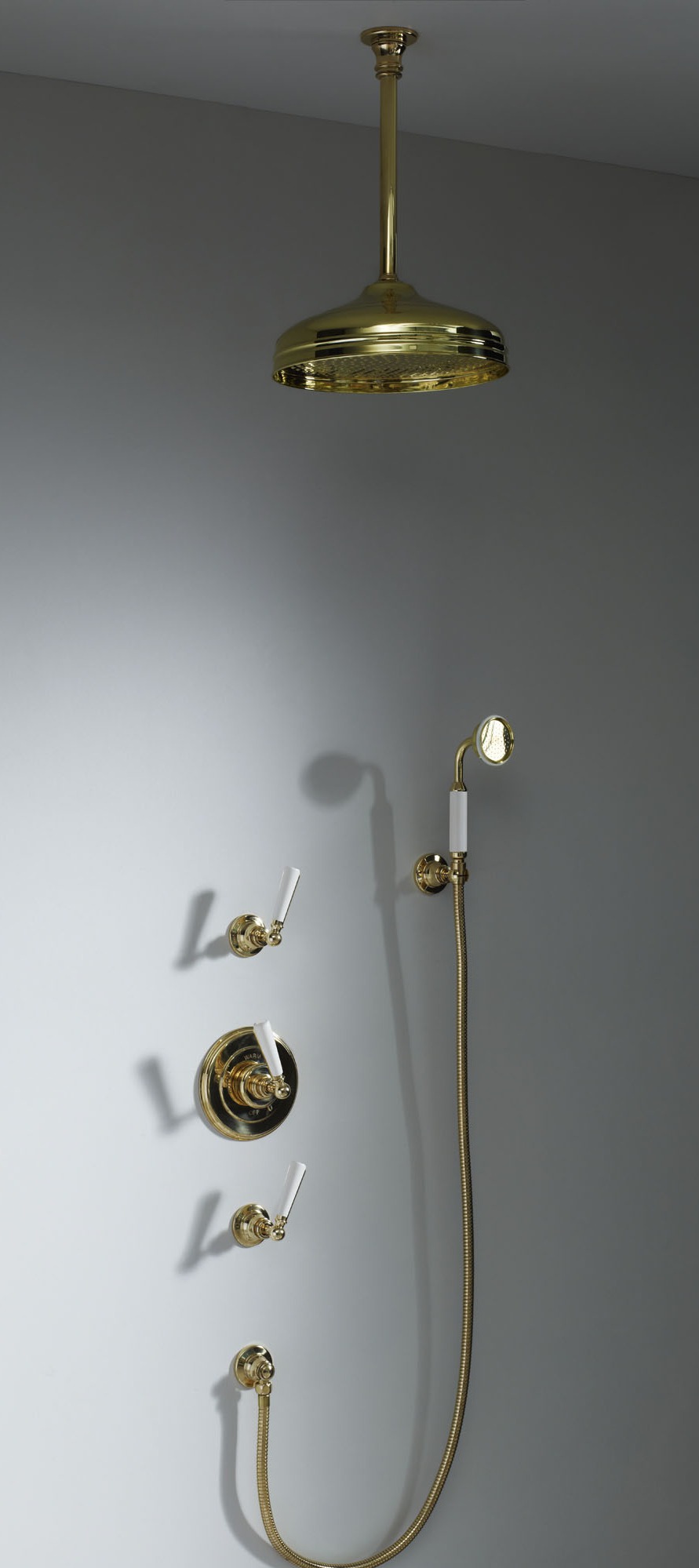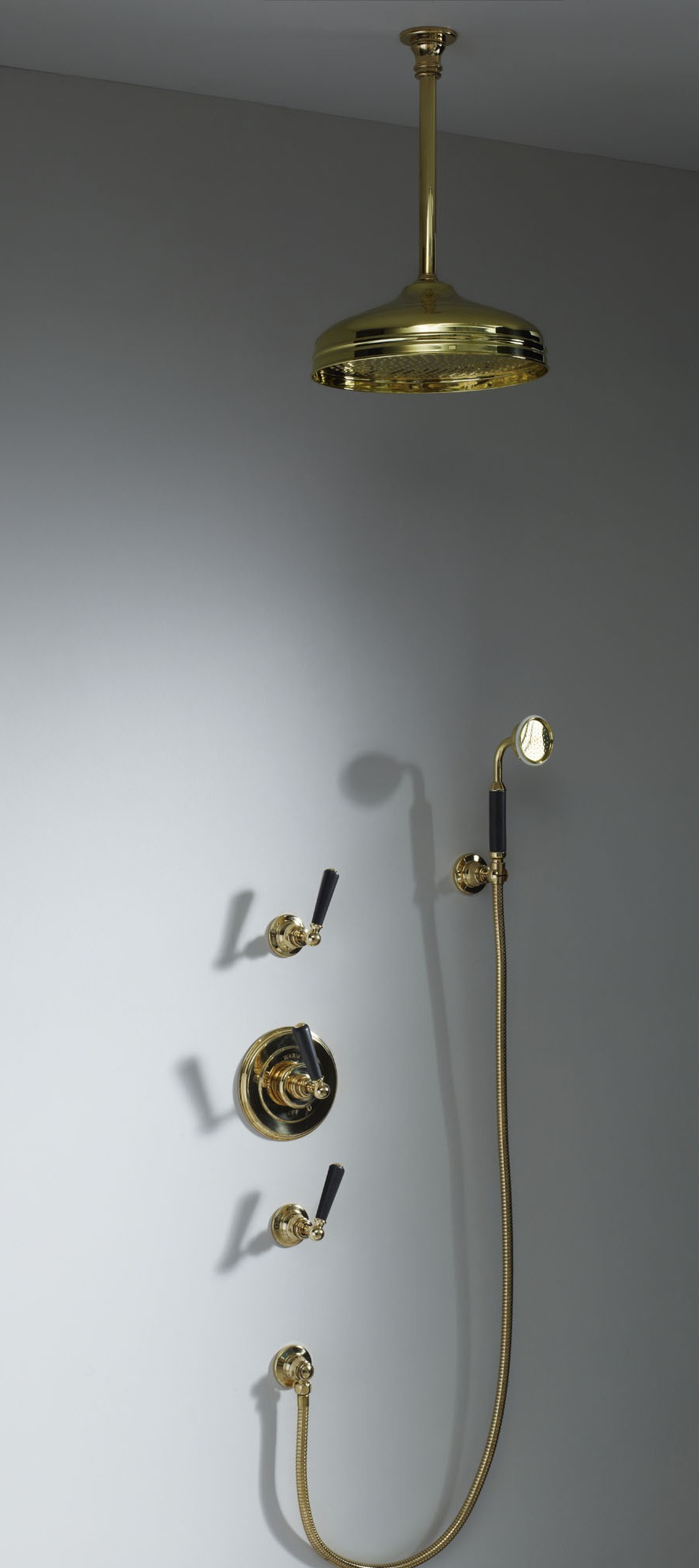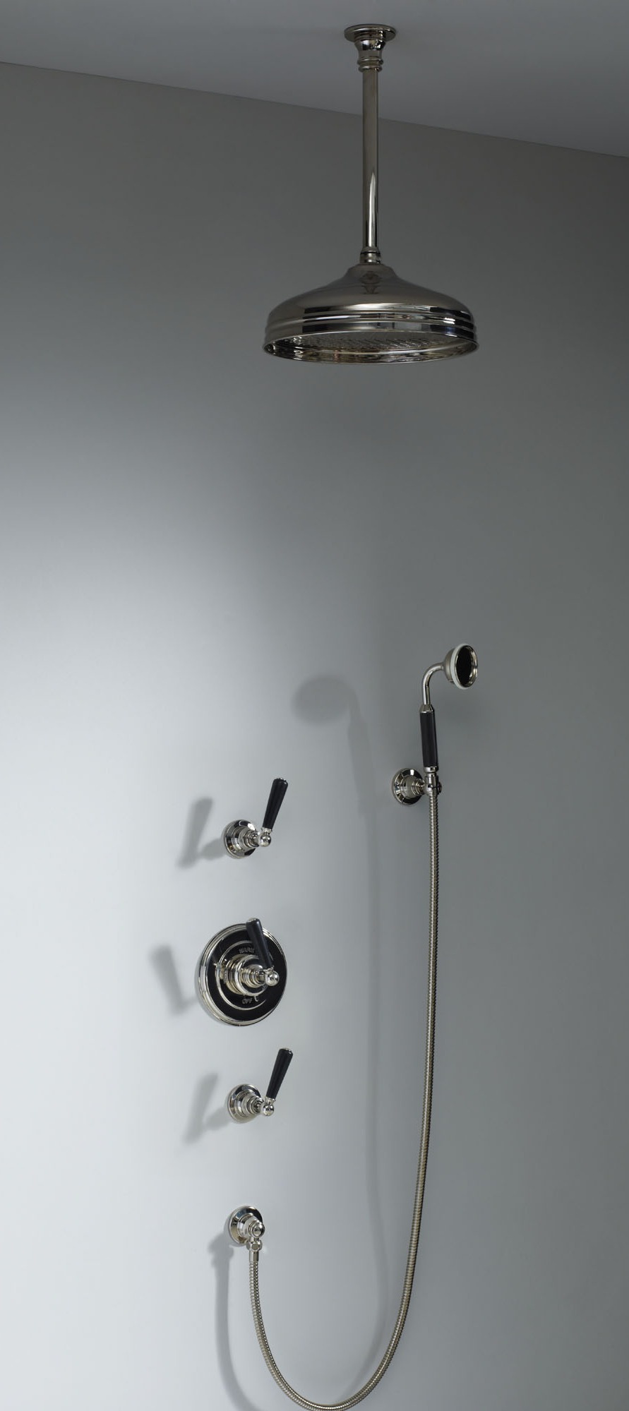 Soho Type H - Soho 300mm ceiling mounted shower arm and 12inch rose 3/4" fitiing, Soho wall mounted concealed thermostatic mixer with rough, trim and crosshead tap, 2 x wall mounted 3/4 inch shut off valve with crosshead tap, wall mounted hand shower. Minimum of 4 bar pressure required.