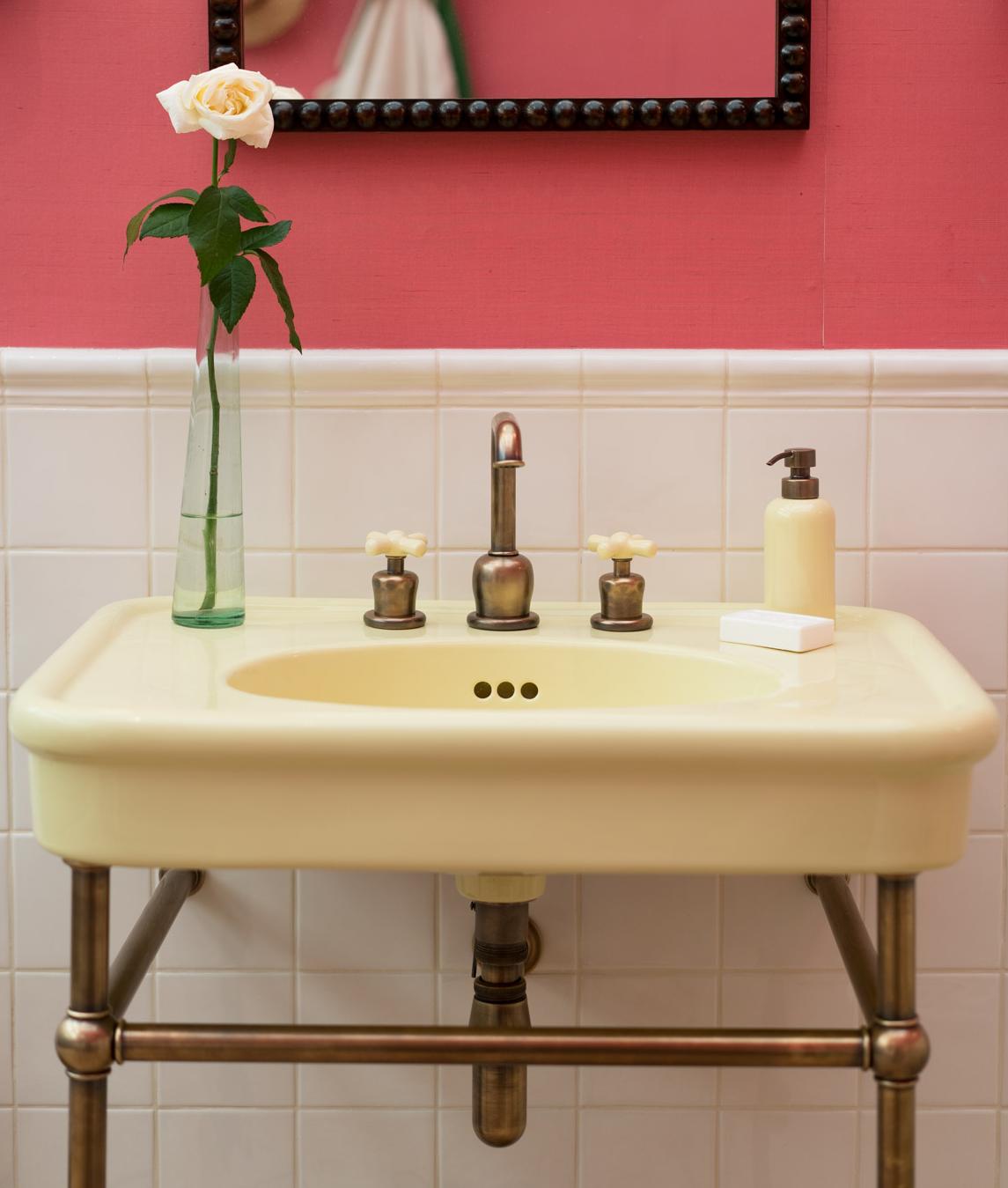 Rockwell basin with a frame. Available with ball, cube or cylindrical jointed frame - shown here with ball jointed. Option to have feet of frame painted.